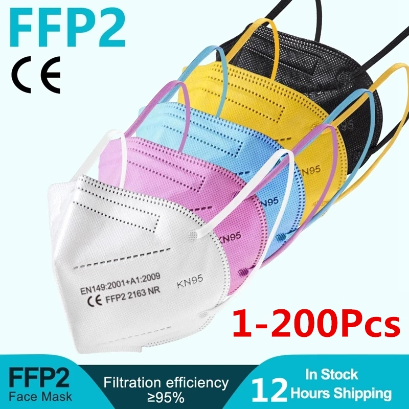 Name: Mascarilla KN95 ffp2 de 5 capas reutilizable, máscara respiradora FPP2, Mascarillas protectoras para la boca, 1-200 Uds.