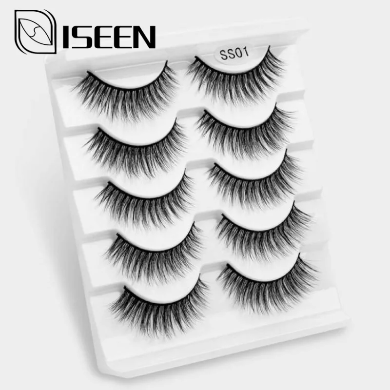 Mejor Productos básicos de belleza de ISEEN Lashes Store por 5 Par 3D visón pestañas falsas corto Natural suave y dramático pestañas falsas hecho a mano sin Cruel maquillaje extensión de pestañas