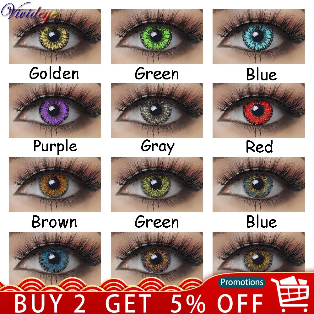 Name: De lentes de contacto para cosméticos chica hermosa pupila de Halloween Cosplay Anime rojo azul verde gris Color de ojos 2 unids/par