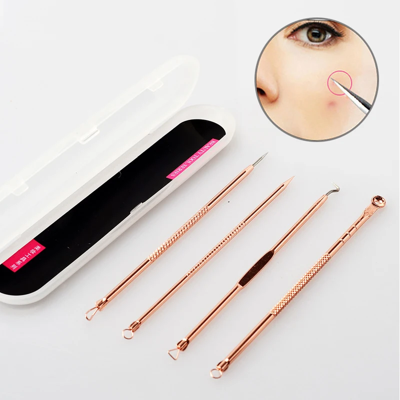 Name: 4 unids/set Blackhead Comedone acné grano herramienta removedor de la espinilla cuchara agujas Facial limpiador de poros para herramienta para cuidado de la piel Facial